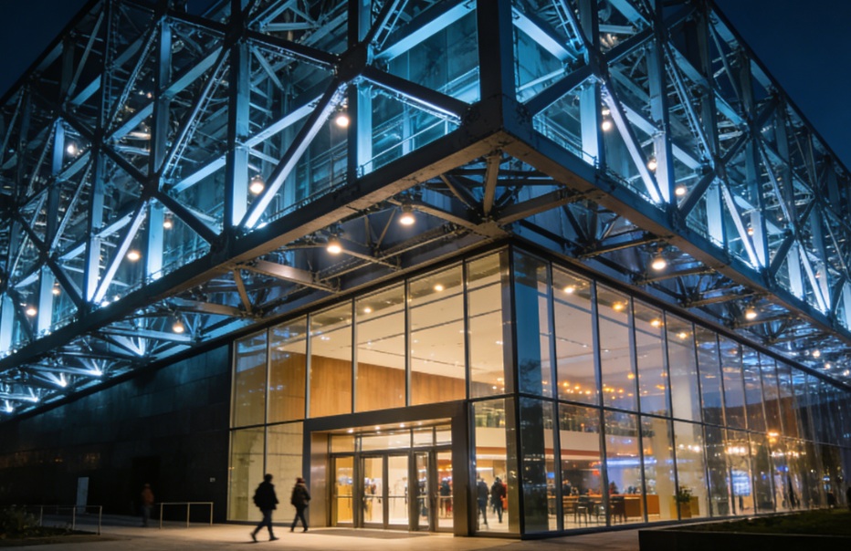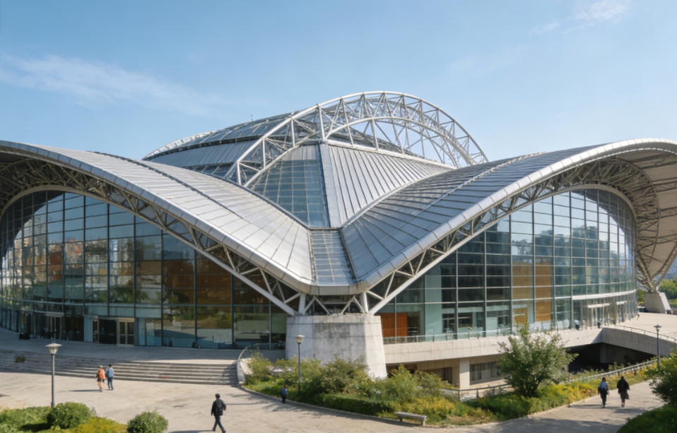 Design icónico sem restriçõesO aço possibilita a criação de formas arquitetónicas dramáticas e fluidas.Telhados altíssimos, varandas amplas e fachadas intrincadas.—o que seria estruturalmente desafiante com outros materiais. Isto permite que o próprio salão se torne um marco cultural que incorpora a expressão artística.